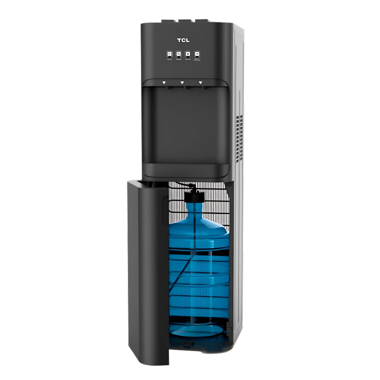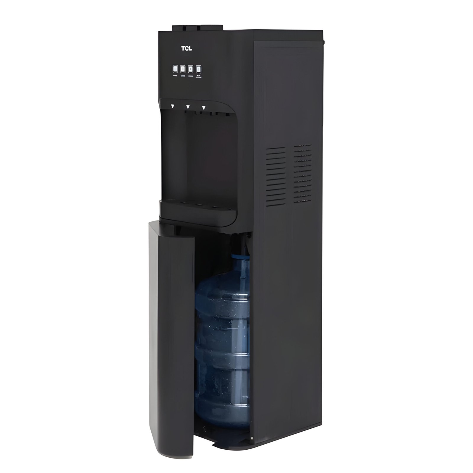 El dispensador de agua TCL TY-LWYR91T combina eficiencia y diseño innovador para ofrecer agua en tres temperaturas: fría, caliente y ambiente, ideal para hogares y oficinas. Su sistema de carga inferior permite ocultar botellones de 3 a 5 galones, lo que facilita su reposición y mejora la estética del dispositivo. Este modelo está equipado con un tanque de acero inoxidable que garantiza durabilidad y resistencia a la corrosión, y con un sistema de filtración y esterilización UV para mayor pureza del agua. Además, cuenta con un bloqueo de seguridad para niños, protección contra sobrecalentamiento y un compresor de alta eficiencia para un rendimiento energético óptimo.